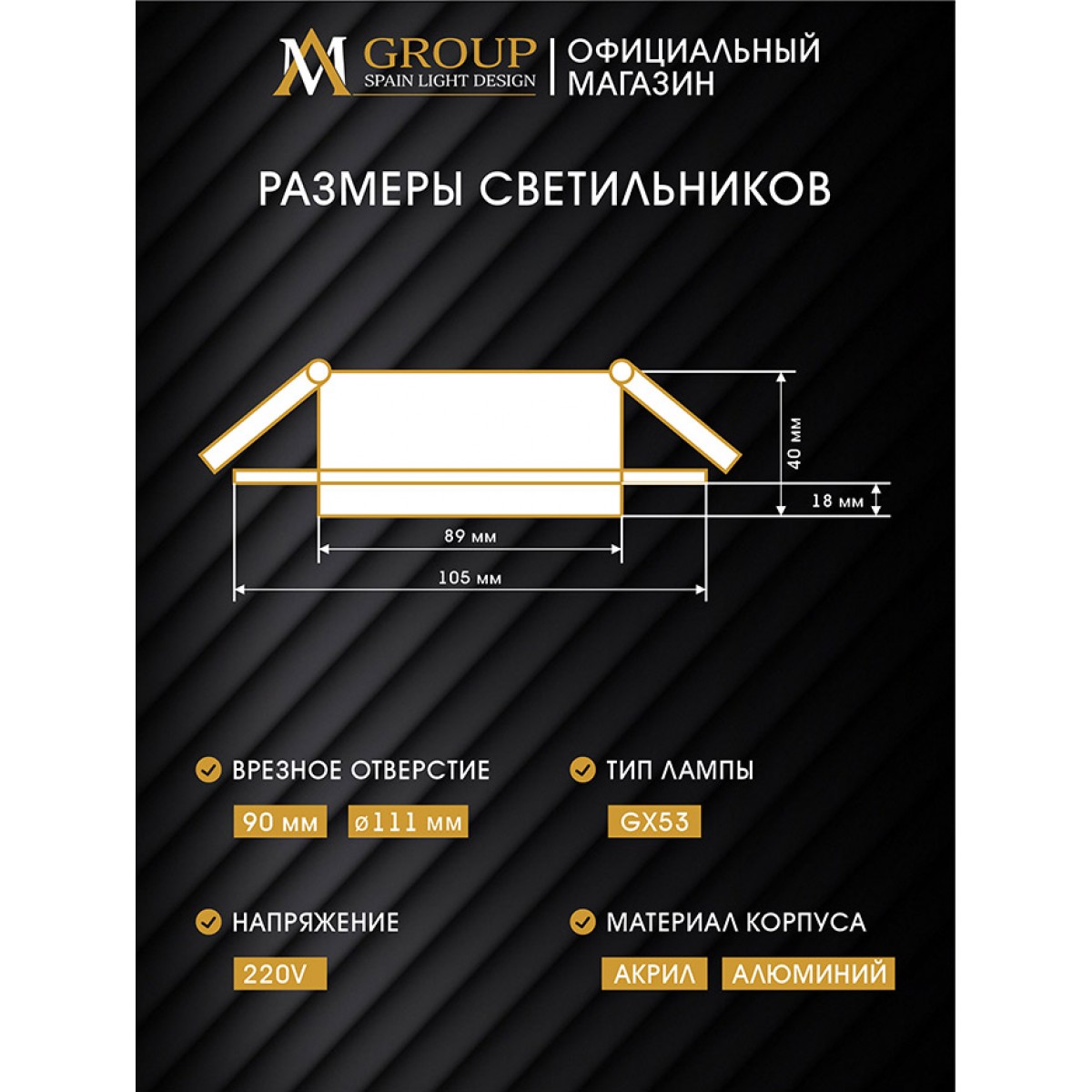 | Цоколь | GX 53, галогенные или светодиодные |