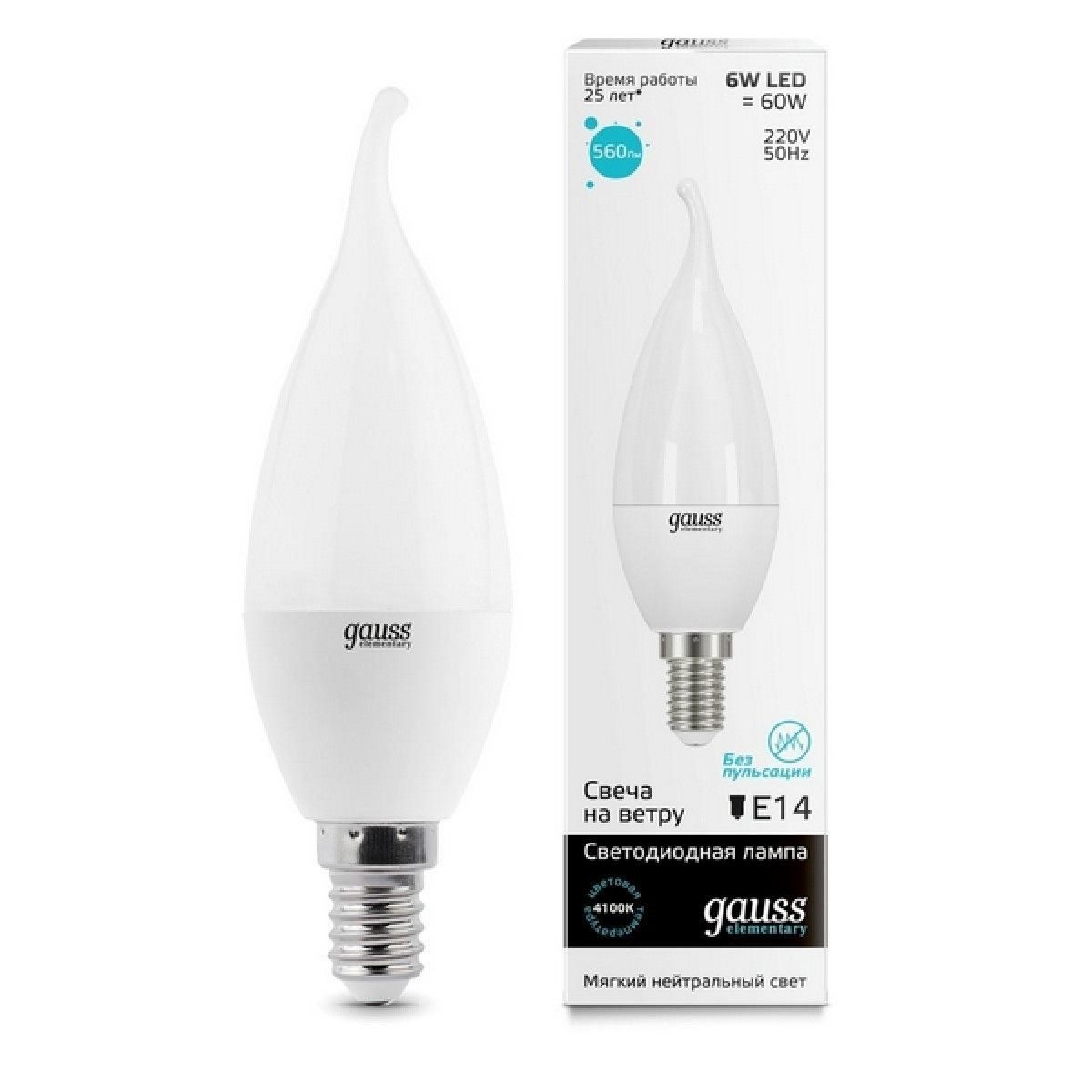 Лампочка LED Elementary Candle Tailed 6W E14 4100K 1/10/50 34126